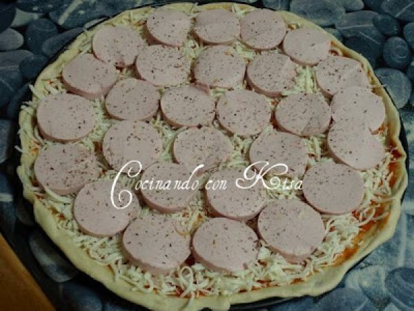 Pizza de salchicha alemana (kitchenaid y horno tradicional) AnteriorSiguiente AperitivoFácil35 min1462 Kcal Enviar esta receta a un amigo Imprimir esta página Preguntar al autor Publicar la foto de esta receta Ingredientes 2 Para la masa; 250 g del preparado de pizza del mercadona 125 ml de agua tibia 40 ml de aceite de oliva 5 g de sal Para el relleno: 1 salchicha grande alemana 200 g de queso de mozzarella rallada 4 cucharadas soperas de tomate frito Especias Tex-Mex de la marca Toque Costo estimado: 6.07Euros€ (3.03€/porción)