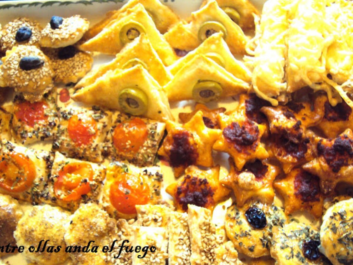 Receta de aperitivos de hojaldre AperitivoFácil15 min1482 Kcal Enviar esta receta a un amigo Imprimir esta página Preguntar al autor Publicar la foto de esta receta Ingredientes 1 queso rallado aceitunas rellenas de anchoa sobrasada bayas de goji comino en polvo pasas orégano finas hierbas sésamo. Costo estimado: 3.43Euros€ (3.43€/porción)