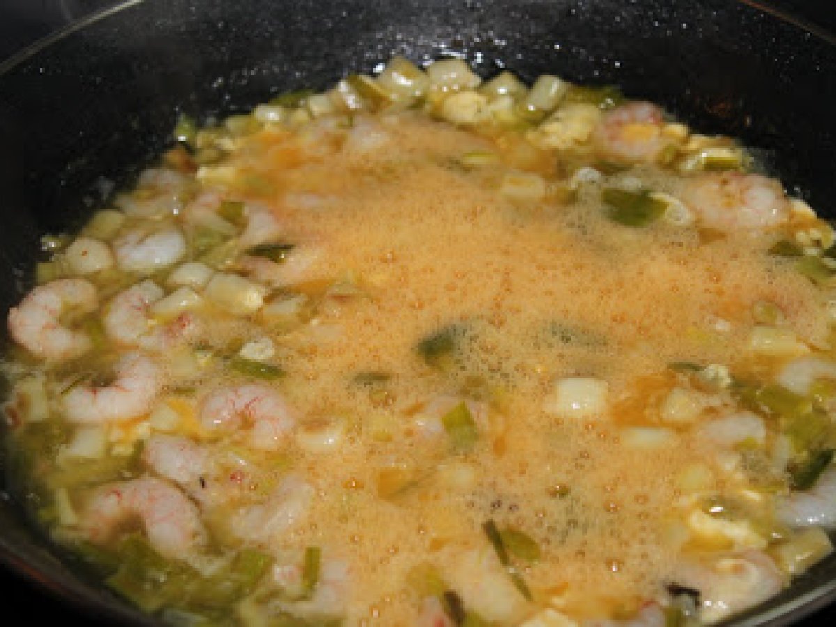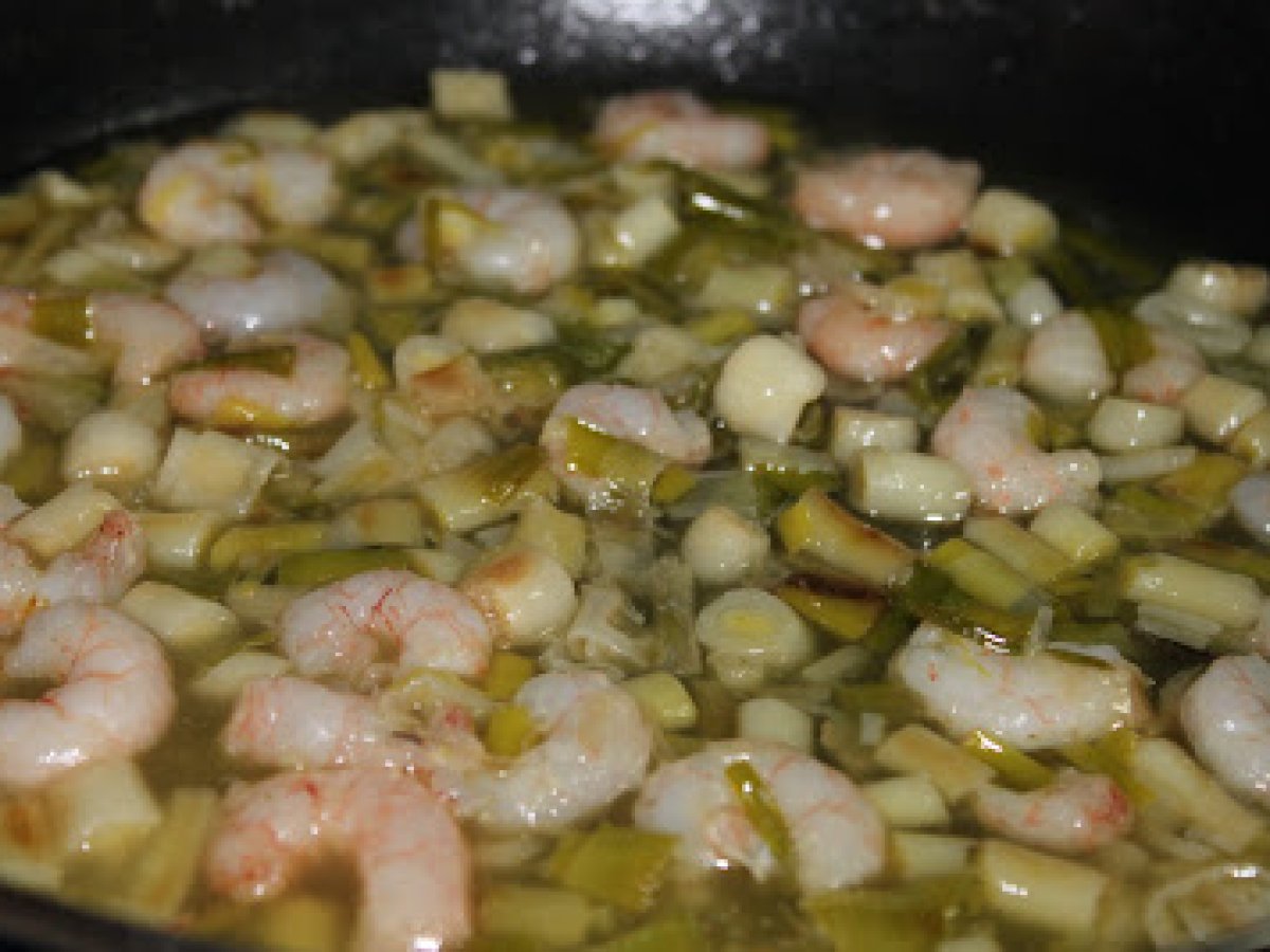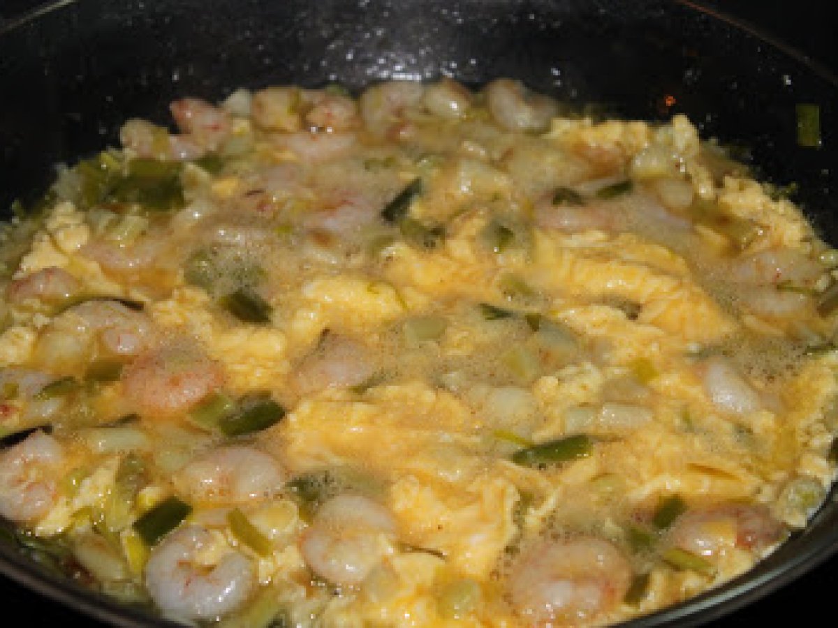 Revuelto de ajetes con langostinos AnteriorSiguiente AperitivoFácil45 min95 Kcal Enviar esta receta a un amigo Imprimir esta página Preguntar al autor Publicar la foto de esta receta Ingredientes 3 1 manojo de ajos tiernos 100 g de langostinos pelados 2-3 huevos Aceite y sal Costo estimado: 2.08Euros€ (0.69€/porción)