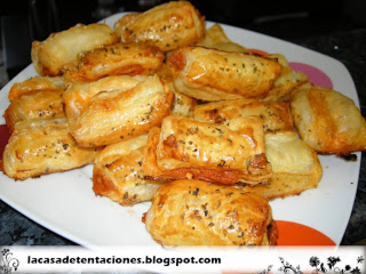 Primero se parte el hojaldre en cuadraditos. - Haceis la mezcla del atún con tomate y vais poniendo un poco en cada cuadradito, y los cerrais primero de un lado y luego el otro, el cierre es mejor que lo pongais boca abajo cuando los pongais en la bandeja porque yo no puse todos boca abajo y se me abrieron un poco. Los pintais con huevo y poneis el oregano y al horno.
