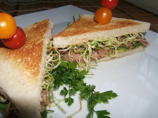 Sandwich de carne asada, palta y brotes AperitivoFácil20 min Enviar esta receta a un amigo Imprimir esta página Preguntar al autor Publicar la foto de esta receta Ingredientes 2 2 rebanadas de pan de molde tostadas y sin corteza (60 g) 40 g de carne asada y cortada fina 40 g de palta ( aguacate, avocado) cortado en rebanadas 20 g de brotes un pequeño manojo de ciboulette 30 g de mayonesa