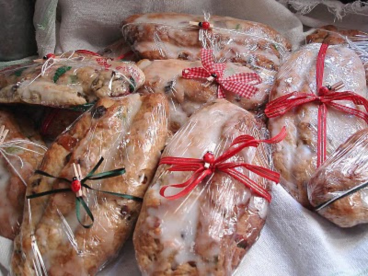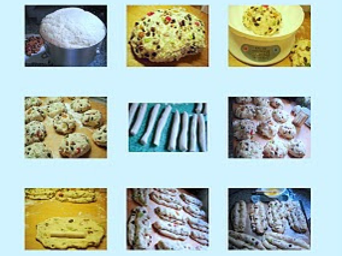 Stollen con mazapán -(marzipan stollen) vota ahora AnteriorSiguiente AperitivoFácil1 h 10 m2572 Kcal Enviar esta receta a un amigo Imprimir esta página Preguntar al autor Publicar la foto de esta receta Ingredientes 4 120 g de cáscaras de naranja confitada 150 g de almendras tostadas (le puse nueces) 50 cc de ron oscuro 120 g de pasas de uva rubias 120. g de pasas sultanas 40 g de levadura fresca 180 g de leche 650 g de harina 1 cda. de especias de especias para repostería ( es una combinación de clavo de olor, jengibre, canela, nuez moscada). 1/2 cda. de macis molido 10 g de sal 120 g de azúcar 2 huevos 15 g de extracto de malta 250 g de mazapán 250 g de manteca blanda y extra para pincelar glaseado de licor de naranja