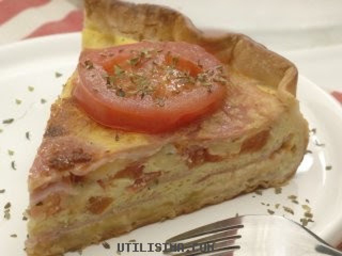 Tarta de jamón y queso AperitivoFácil35 min1367 Kcal Enviar esta receta a un amigo Imprimir esta página Preguntar al autor Publicar la foto de esta receta Ingredientes 2 1 Paquete (2 Unidades) Masa Para Tarta de Hojaldre 250 g Jamón Cocido 250 g Queso Mantecoso 2 Tomates 2 Cebollas 3 Huevos Duros Cantidad Necesaria Orégano Cantidad Necesaria Nuez Moscada Cantidad Necesaria Sal Cantidad Necesaria Pimienta Cantidad Necesaria Aceite 1 Huevos Batidos Costo estimado: 8.48Euros€ (4.24€/porción)