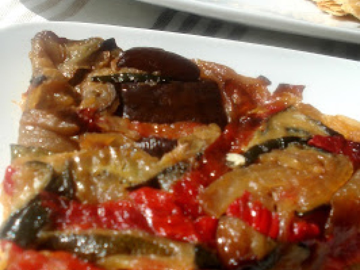 Tarta tatin de verduras asadas AnteriorSiguiente AperitivoFácil30 min320 Kcal Enviar esta receta a un amigo Imprimir esta página Preguntar al autor Publicar la foto de esta receta Ingredientes 4 1 lámina de hojaldre 1 pimiento italiano rojo 1 berenjena 1 calabacín 1 cebolla Una cucharada de vinagre de módena Aceite y sal Costo estimado: 2.61Euros€ (0.65€/porción)