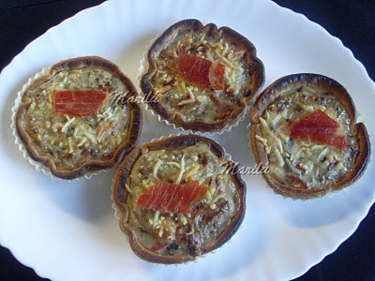 Tartaletas de champiñones AnteriorSiguiente AperitivoFácil30 min Enviar esta receta a un amigo Imprimir esta página Preguntar al autor Publicar la foto de esta receta Ingredientes 2 obleas de empanadillas ajo cebolla champiñones jamón serrano vermuth blanco sal pimienta salsa bechamel (receta aqui,bechamel)