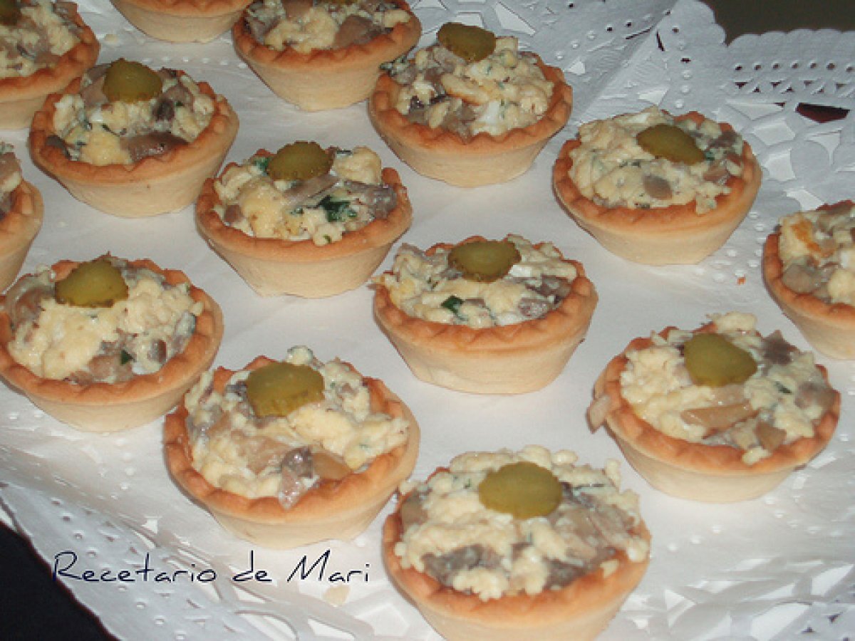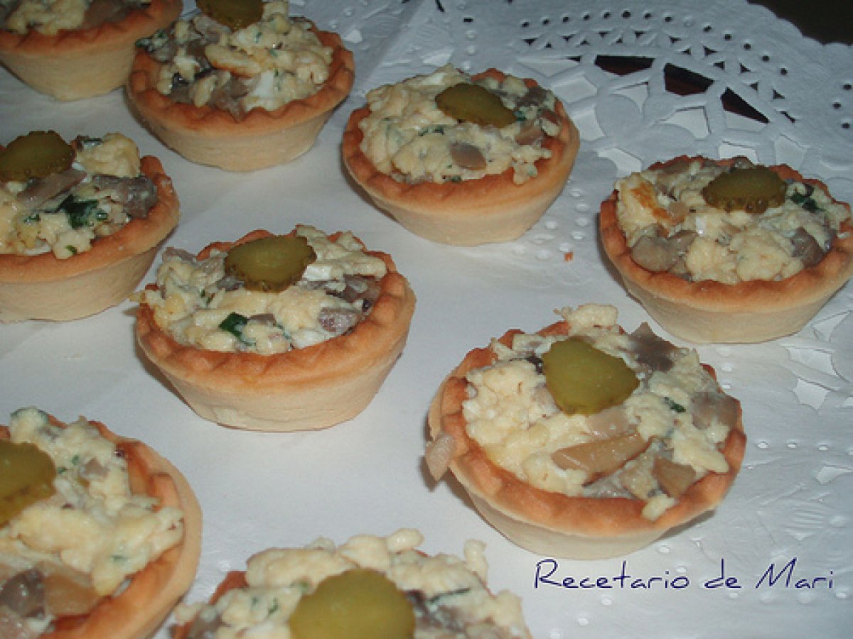 Tartaletas de revuelto con champiñones AnteriorSiguiente AperitivoFácil15 min Enviar esta receta a un amigo Imprimir esta página Preguntar al autor Publicar la foto de esta receta Ingredientes 6 Un paquete de tartaletas 3 huevos 1 lata de champiñones o naturales 2 dientes de ajo sal, pimienta perejil aceite de oliva pepinillo (para decorar)