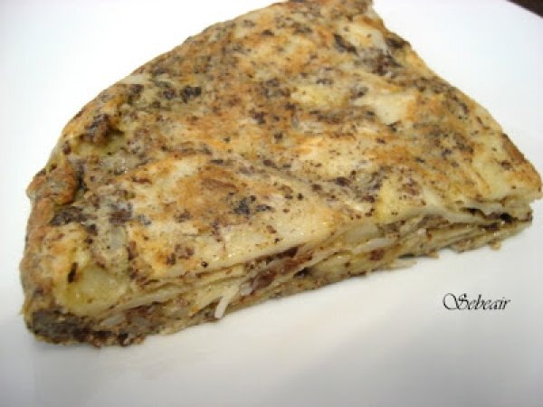 Tortilla de morcilla (tradicional) AnteriorSiguiente AperitivoFácil30 min1073 Kcal Enviar esta receta a un amigo Imprimir esta página Preguntar al autor Publicar la foto de esta receta Ingredientes 2 4 patatas medianas 5 huevos 125 g de morcilla de arroz y verduras ríos Aceite de girasol para freír las patatas Un pelín de aceite de oliva para freír la morcilla Sal Costo estimado: 2.17Euros€ (1.08€/porción)