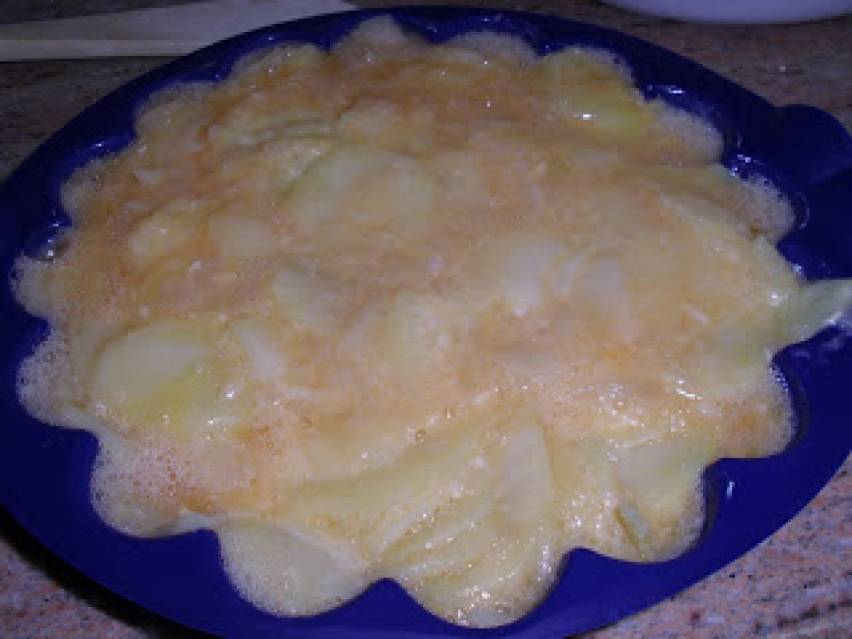 Tortilla de patatas al microondas AnteriorSiguiente AperitivoFácil30 min406 Kcal Enviar esta receta a un amigo Imprimir esta página Preguntar al autor Publicar la foto de esta receta Ingredientes 2 3 patatas 1 cebolla Sal Aceite 4 huevos Costo estimado: 1.38Euros€ (0.69€/porción)