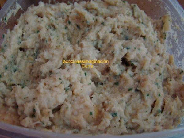 En esta receta no pongo cantidades porque es de aprovechamiento. Había preprado, días atrás, unos garbanzos con gambas y también tenía un lomo de bacalao desalado. Inmediatamente me vino a la cabeza el falafel y así lo he hecho!