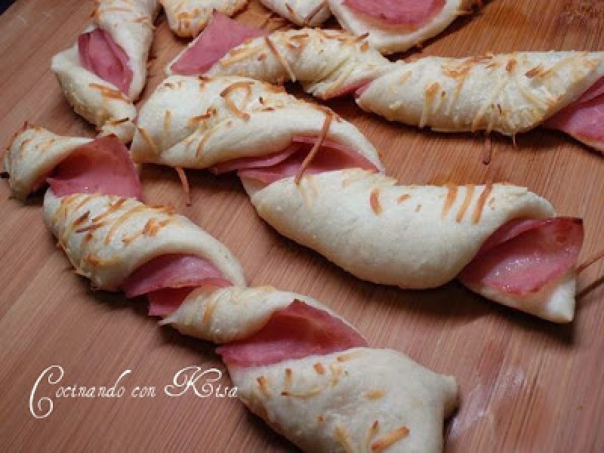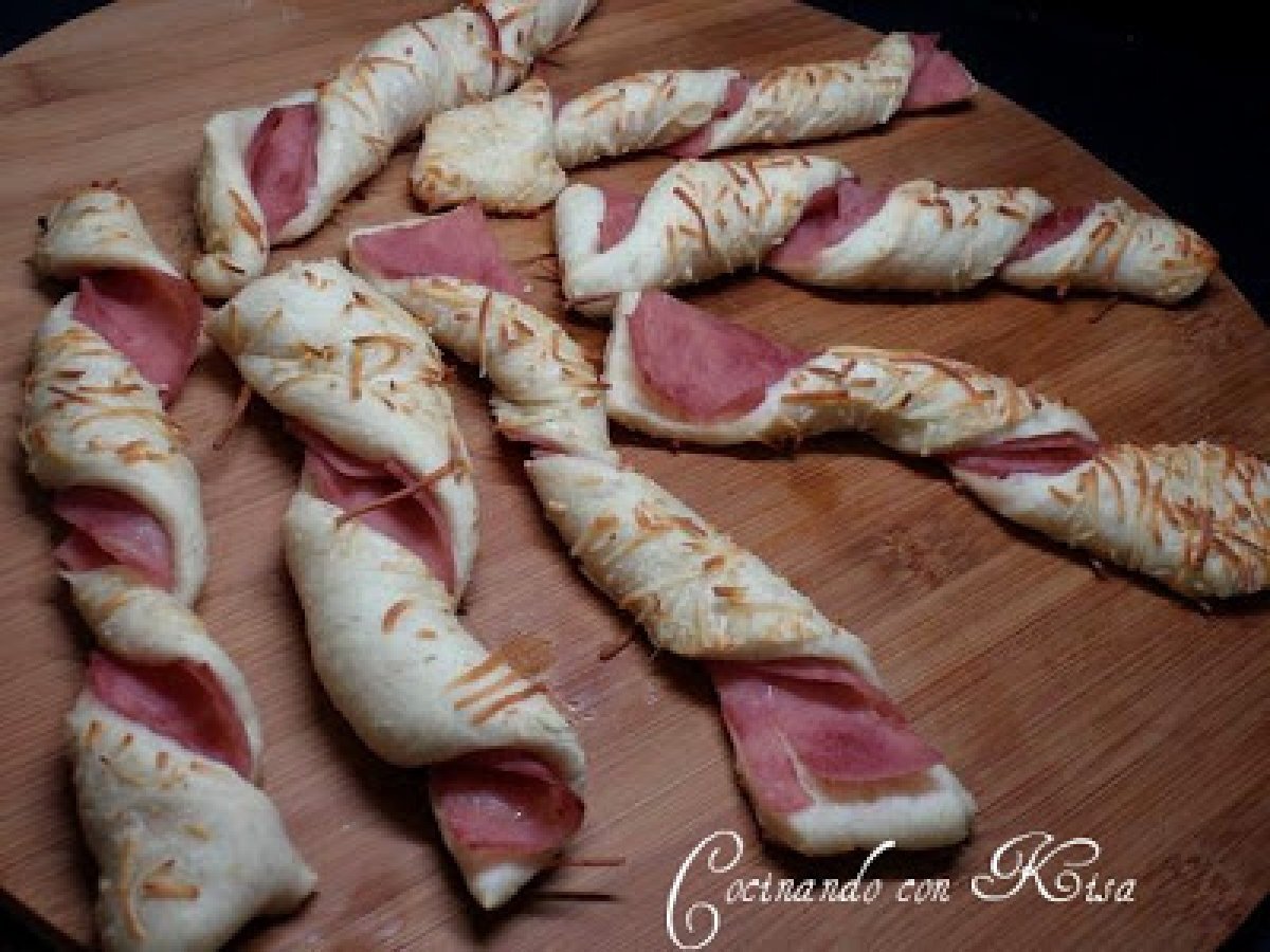 Torzadas de jamón(kitchenaid y horno tradicional) vota ahora AnteriorSiguiente AperitivoFácil50 min Enviar esta receta a un amigo Imprimir esta página Preguntar al autor Publicar la foto de esta receta Ingredientes 6 350 g de harina de fuerza 6 g de sal 1 sobre de levadura seca o 15grs de levadura fresca 290 g de agua templada 24 g de aceite girasol 11 g de aceite de oliva 75 g de queso rallado para gratinar 13 a 14 lonchas de jamón york