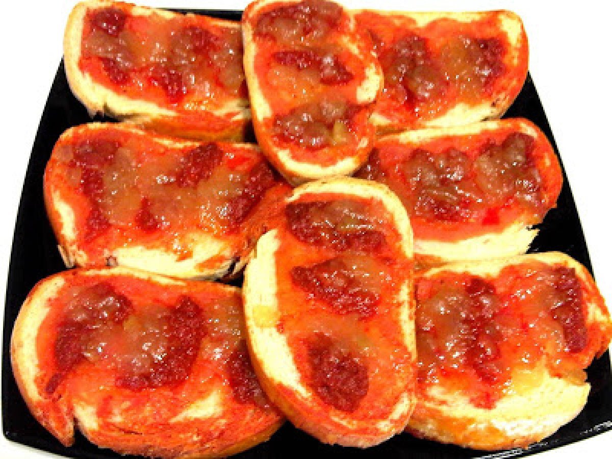 Tosta con tomate babyfresh, sobrasada y cebolla confitada vota ahora AnteriorSiguiente AperitivoFácil25 min952 Kcal Enviar esta receta a un amigo Imprimir esta página Preguntar al autor Publicar la foto de esta receta Ingredientes 2 8 rebanadas de pan especial para tostadas Sobrasada Cebolla confitada Tomate natural rallado Babyfresh Costo estimado: 3.41Euros€ (1.7€/porción)