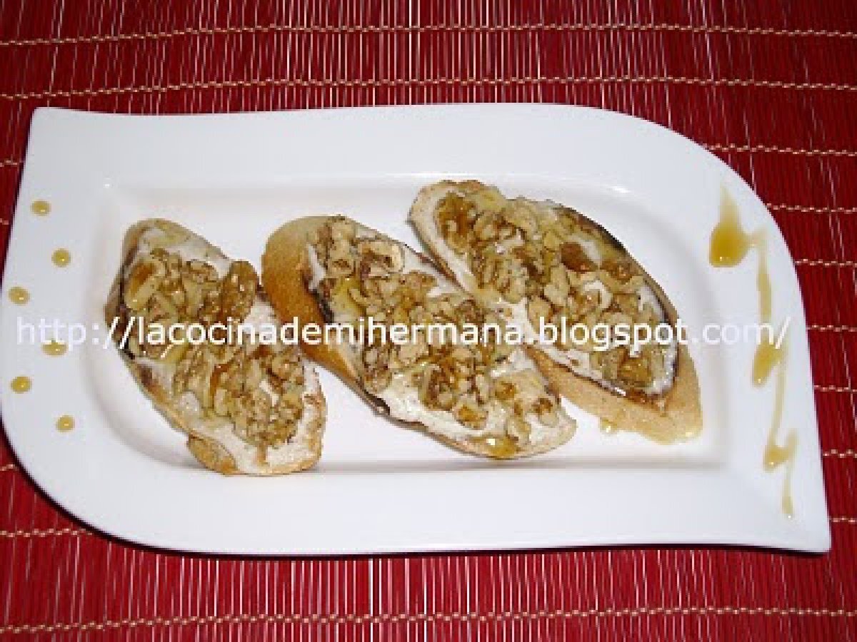 Tostas de paté de queso con nueces y miel AperitivoFácil40 min460 Kcal Enviar esta receta a un amigo Imprimir esta página Preguntar al autor Publicar la foto de esta receta Ingredientes 3 50g. de leche, un gajo de cebolla 150g. de queso graso 150 9. de queso azul 1 cucharada de mantequilla 200g. de queso philadelphia Nueces picadas Costo estimado: 3.71Euros€ (1.24€/porción)