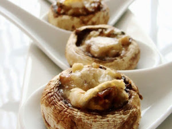 Llene cada seta en "cortar". - Colocar en una bandeja para hornear y cocer en el horno precalentado a 485F durante veinte minutos, o hasta que esté hecho.
