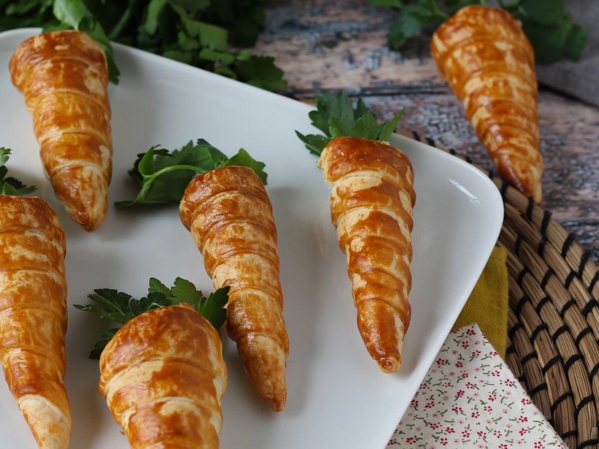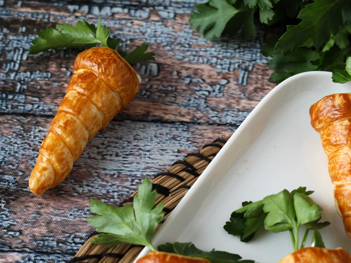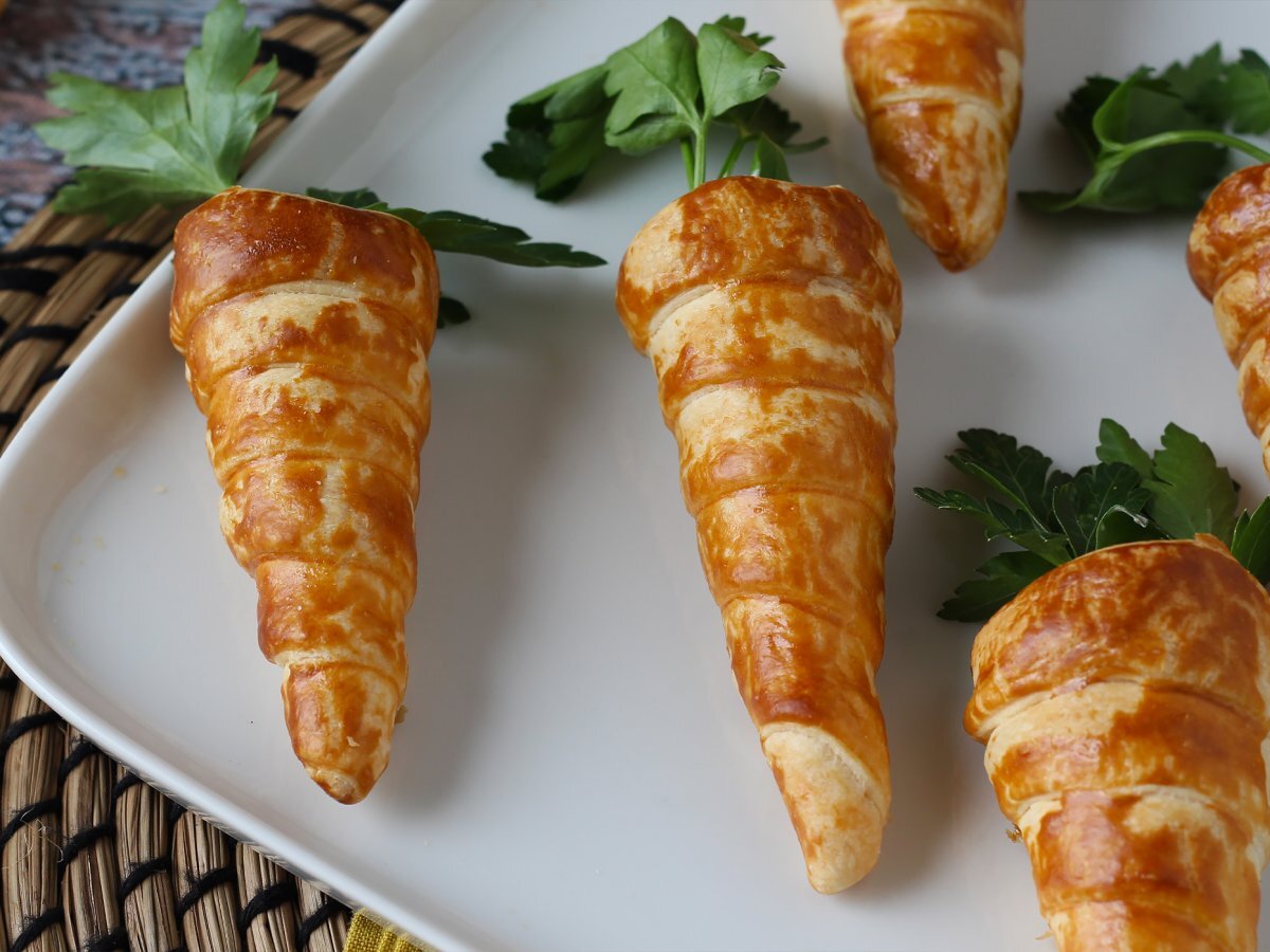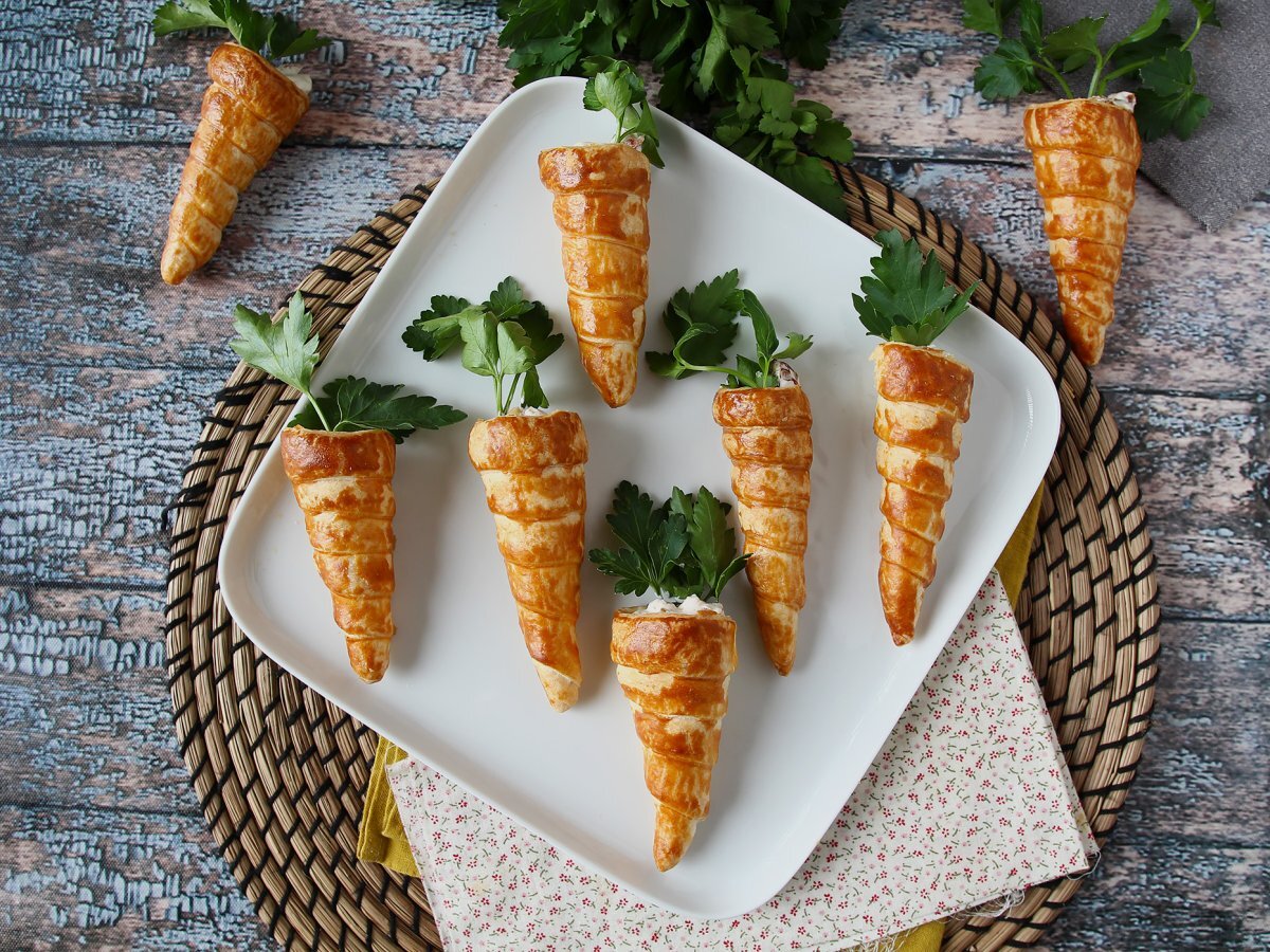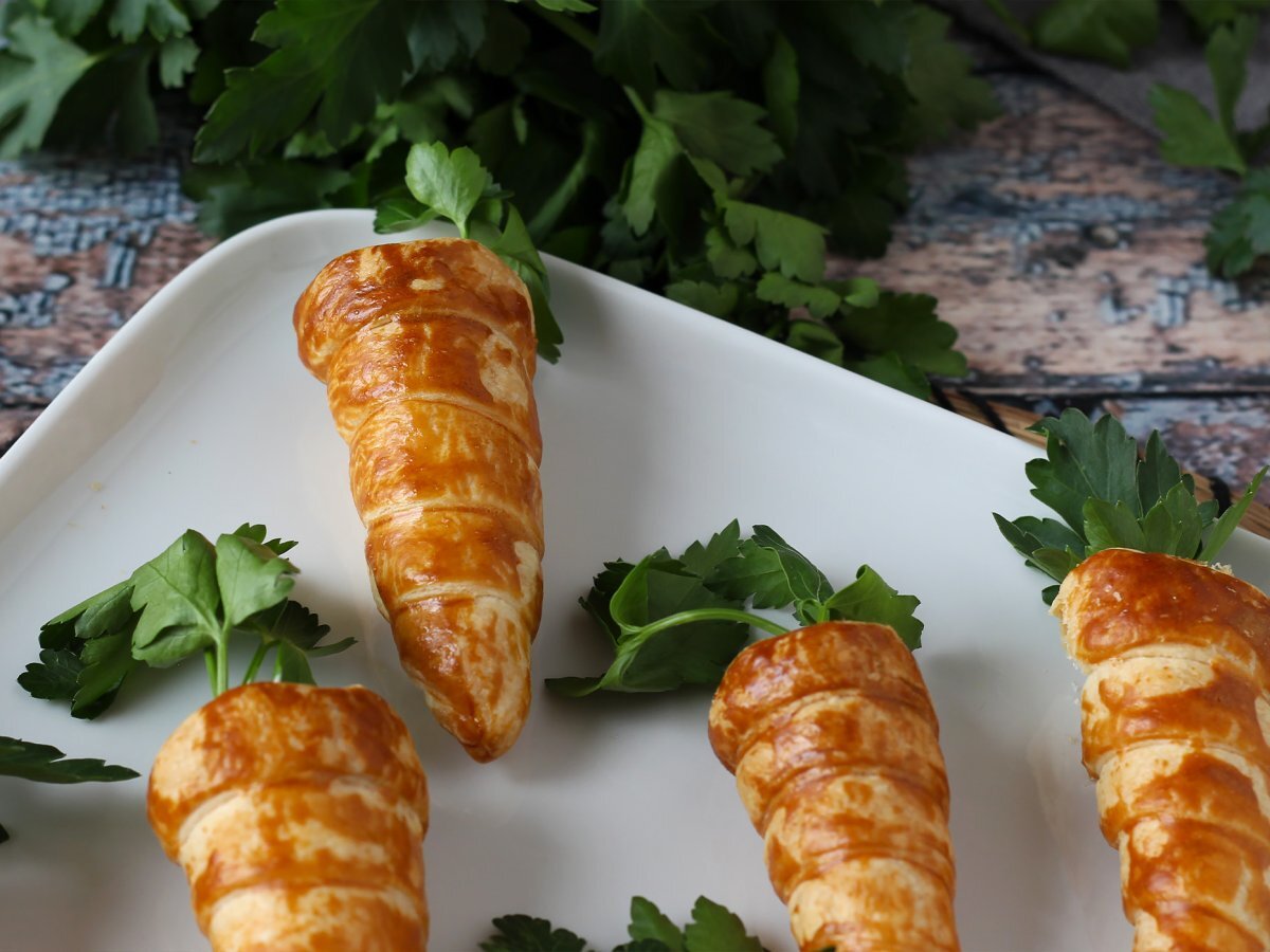 Zanahorias de hojaldre rellenas de queso crema y tomate seco