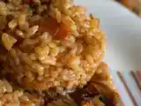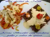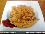 Arroz integral con brócoli, gambas y salsa picante coreana