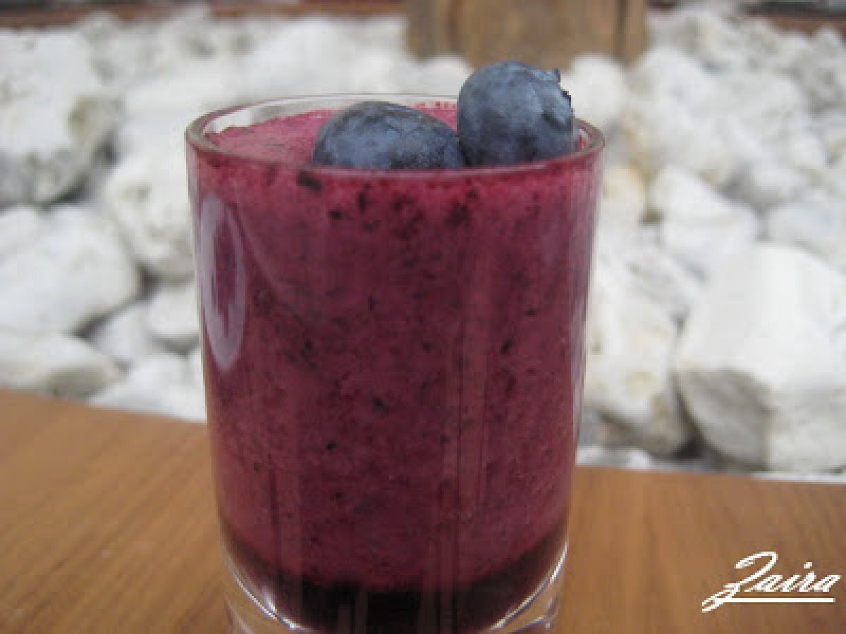 Batido de arándanos y yogur AnteriorSiguiente BebidaFácil20 min219 Kcal Enviar esta receta a un amigo Imprimir esta página Preguntar al autor Publicar la foto de esta receta Una perfecta bebida muy refrescante para el verano. Ingredientes 6 1/2 litro de puré de arándanos 200 g de azúcar 4 dl. de leche 3 yogures griego algunos arándanos naturales para el adorno Costo estimado: 9.54Euros€ (1.59€/porción)