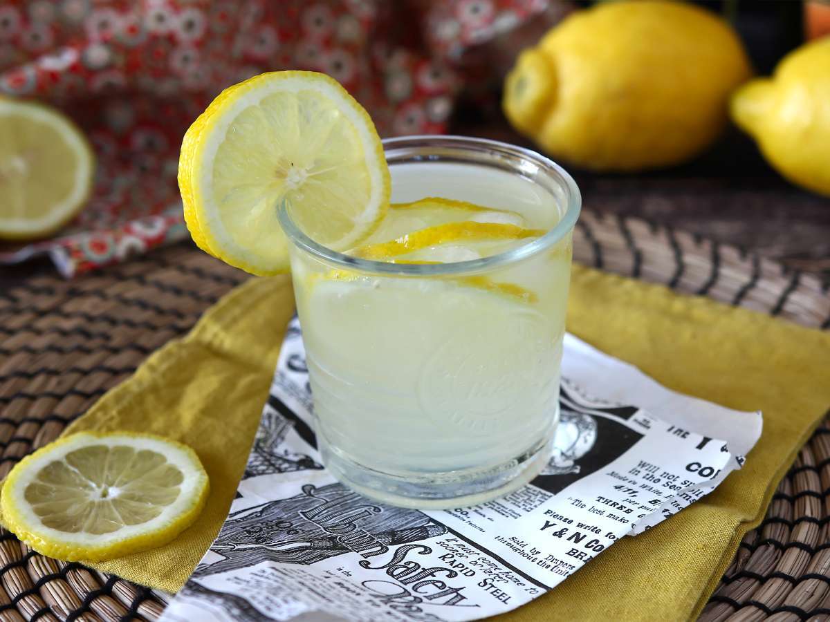 Meter algunas rodajas de limón en el vaso. Decorar colocando una rodajita de limón en el borde del vaso. Y listo!