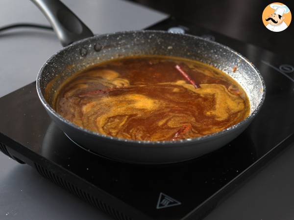 Cuando la mezcla se haya reducido, retirar del fuego y colar el sirope con la ayuda de un colador o filtro de café reutilizable, por ejemplo.