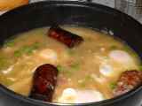 Ingredientes: 1 trozo de longaniza en adobo por persona 1 huevo por persona 1 tarro de tallos de espárragos 1 puñado de guisantes El caldo de los espárragos 2...