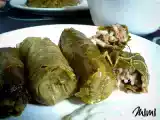 Ingredientes: 15 hojas de parra 100 g de arroz cocido 2 cebollas bien picadas 150 g de carne de ternera 100 g de pasas de uva 2 cucharadas de menta picada 2...