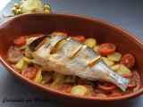 Ingredientes: 1 dorada de un kilo aprox 4 patatas 1 cebolla grande 2 dientes de ajos 1 tomate maduro grande 1 pimiento verde 120 ml de vino blanco 40 ml de...