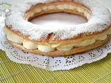 Ingredientes: 2 láminas de hojaldre (fresco redondas) azúcar lustre (o glas para decorar) 500 ml de nata 35% MG (para montar) 80 gr azúcar 1 huevo (para pintar)
