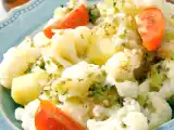 Ensalada de otoño: judías, calabaza, coliflor, manzana y avellanas