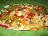 Ingredientes: 350 gr de pasta (macarrones) 2 tomates 150 gr de feta 85 gr aceitunas negras deshuesadas 5 cdas de aceite de oliva 1 cda de vinagre balsámico...