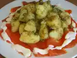 Ingredientes: 500 gr de patatas Aceite de oliva Sal Pimienta Pimentón (opcional) Tomillo (opcional) 1 pepino 200 gr de yogur griego 1 chalota Zumo de 1/2 limón...