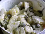 Ensalada de pepinos y patatas crujientes