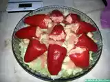 Ingredientes: Pimientos del piquillo Palitos de cangrejo o surimi Cebolleta Mayonesa Sal , azúcar y AOVE