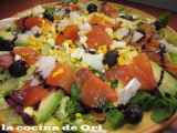 Ingredientes: Una bolsa de brotes tiernos de Eroski o Bonduelle 1 aguacate 100 g de salmon ahumado unas aceitunas negras Un huevo cocido y picado sal crema de...