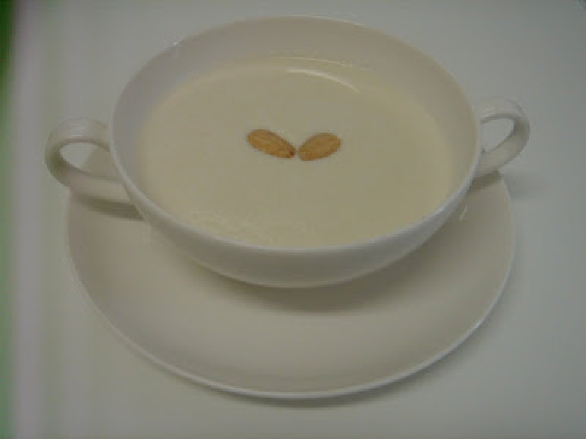 Ajoblanco de almendras AnteriorSiguiente EntranteFácil15 min1538 Kcal Enviar esta receta a un amigo Imprimir esta página Preguntar al autor Publicar la foto de esta receta Un ingreso perfecto para el calor del verano. Ingredientes 2 150 g de almendras o harina de almendras 2 -3 diente de ajo 100 g de miga de pan 150 - 200 g de aceite de oliva Vinagre (al gusto) Sal (al gusto) 1 litro de agua fría Costo estimado: 5.33Euros€ (2.67€/porción)