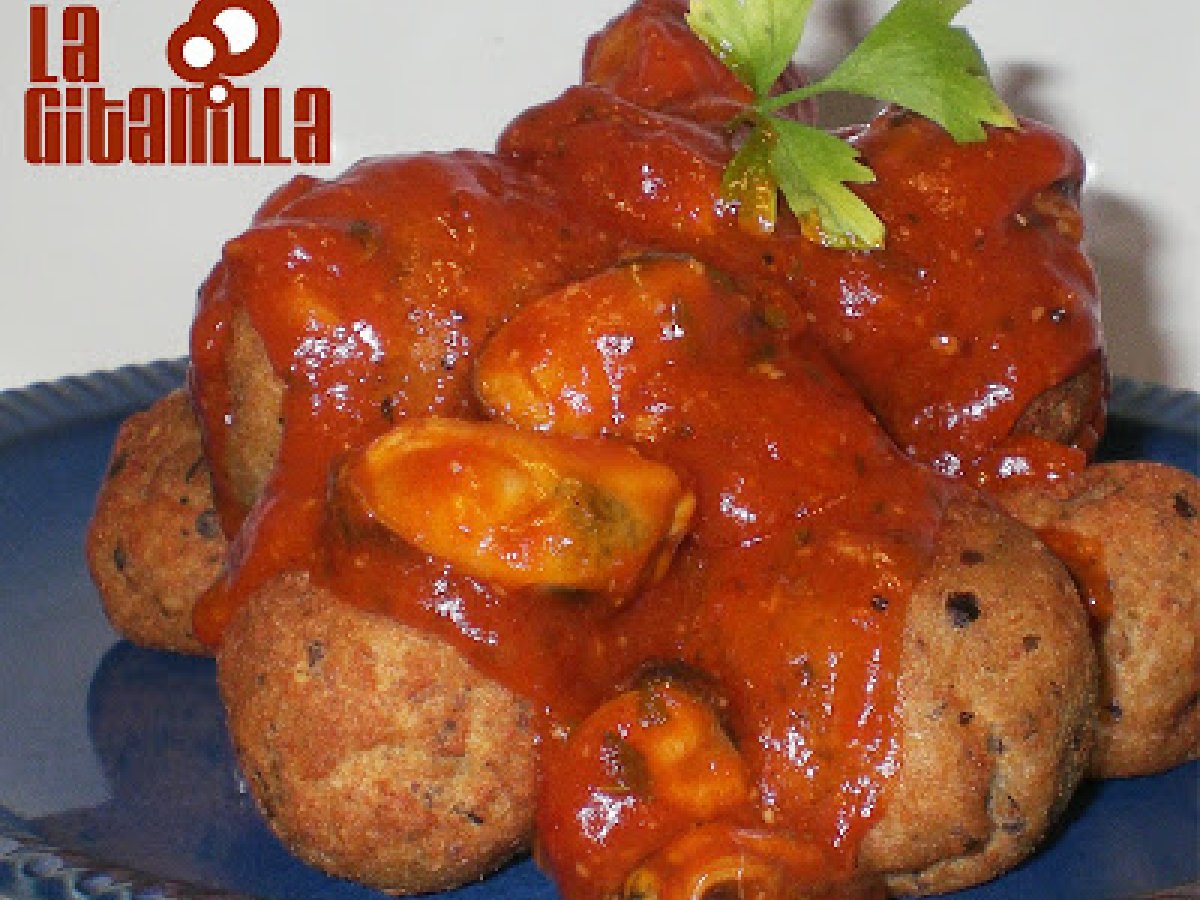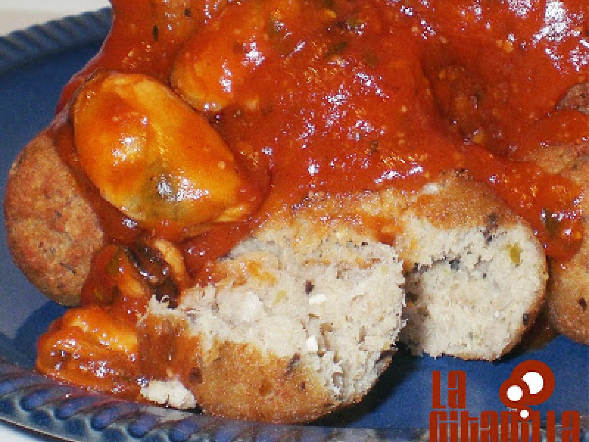 Albóndigas de pescado con salsa de tomate y mejillones AnteriorSiguiente EntranteFácil45 min468 Kcal Enviar esta receta a un amigo Imprimir esta página Preguntar al autor Publicar la foto de esta receta Para un entrante delicioso. Ingredientes 3 Albóndigas de pescado 500 g de pescado blanco 50 g de aceitunas negras deshuesadas 50 g de piñones 1 cucharada de alcaparras 1 cuchara de aceite 1 tacita de pan rallado 1 huevo Sal perejil y pimienta 1 lata de tomate frito de lata 2 ajos bien picados 100 g de mejillones hervidos en agua y sal 2 cucharadas del caldo donde hemos hervido el pescado albahaca fresca Orégano