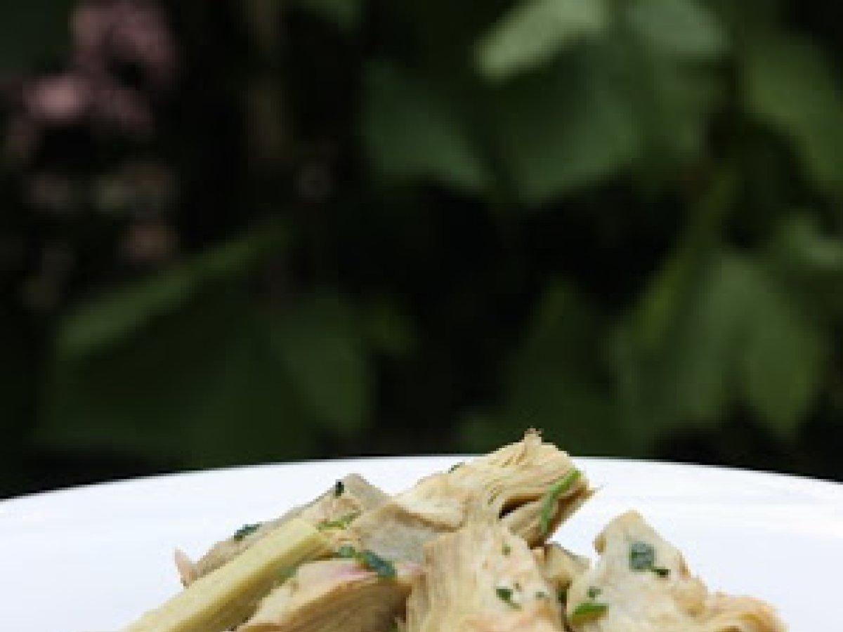 Mi madre siempre hacia esta ensalada de alcauciles cuando era la temporada. Quedan muy sabrosos y con el sabor concentrado. Para elegirlos, siempre les aprieto la punta de las hojas, que debe estar duras y no separarse a la presion.