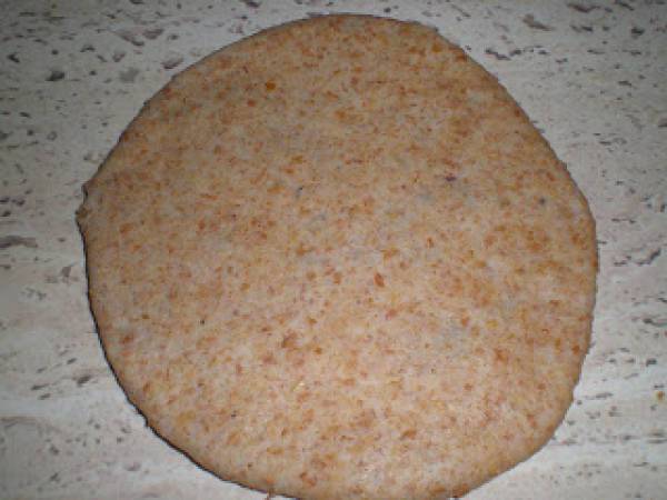 Se dá la vuelta a la masa de forma que el "guruñito" quede hacia abajo y con las manos vamos aplanando muy suavemente para que no se rompa la masa. Usar el rodillo pero suavemente. Al final ya le cogeréis el tranquillo.