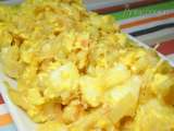 Bacalao "à brás" o bacalao dorado EntranteFácil35 min Enviar esta receta a un amigo Imprimir esta página Preguntar al autor Publicar la foto de esta receta Ingredientes 1 1/2 kg de bacalao desmigado y desalado 1 bolsita de patatas fritas paja de 200 g aproximadamente 1 vaso de leche 1 cebolla picada 1 diente de ajo muy picadito 8 huevos aceitunas negras perejil sal y pimienta aceite de oliva