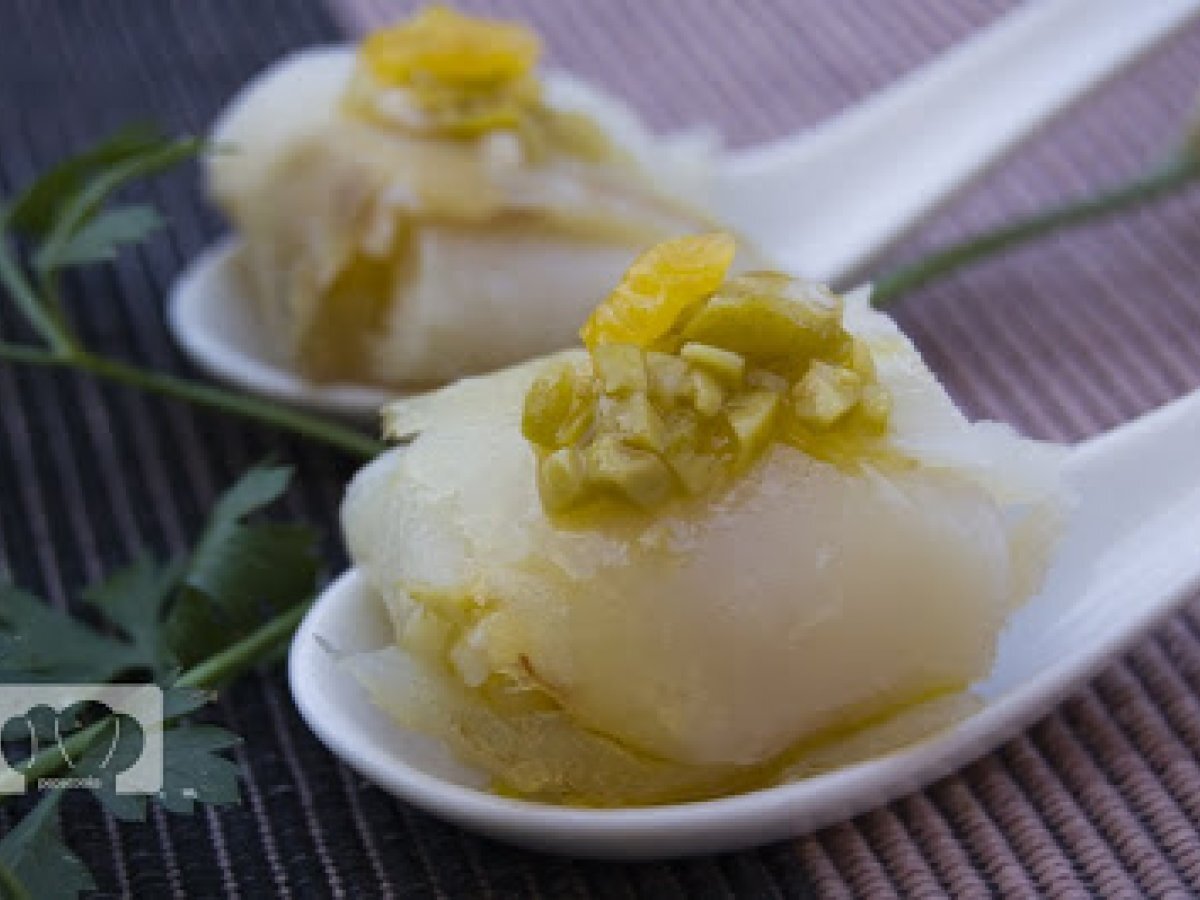 Bacalao ahumado con cebolleta y naranja AnteriorSiguiente EntranteFácil20 min184 Kcal Enviar esta receta a un amigo Imprimir esta página Preguntar al autor Publicar la foto de esta receta Servir este ingreso sabroso como entrada. Ingredientes 2 1 cebolleta 1 naranja Bacalao Ahumado Para la vinagreta: Aceitunas sin anchoa Vinagre de Jerez Aceite de oliva Virgen Extra · Sal Costo estimado: 1.76Euros€ (0.88€/porción)