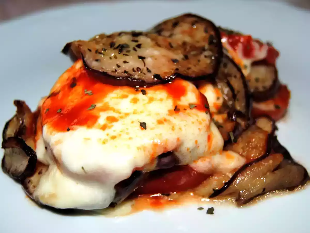 Berenjenas a la parmesana (melanzane alla parmigiana) EntranteMedio30 min1087 Kcal Enviar esta receta a un amigo Imprimir esta página Preguntar al autor Publicar la foto de esta receta Ingredientes 1 2 Berenjenas 200 gramos de mozzarella 4 tomates 50 gramos de parmesano rallado 100 gramos de salsa de tomate Albahaca Unas gotas de Aceite de Oliva Costo estimado: 4.31Euros€ (4.31€/porción)