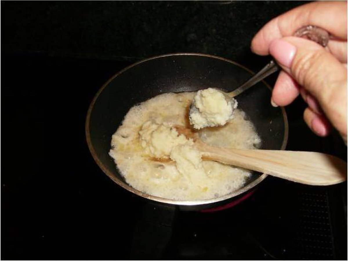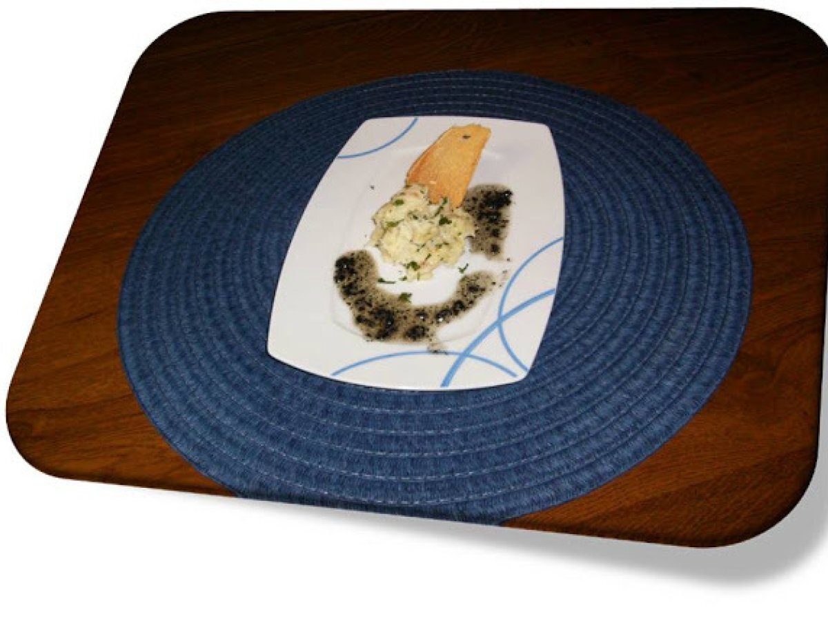 Brandada de bacalao con crocante de pan y aceite de olivas negras
