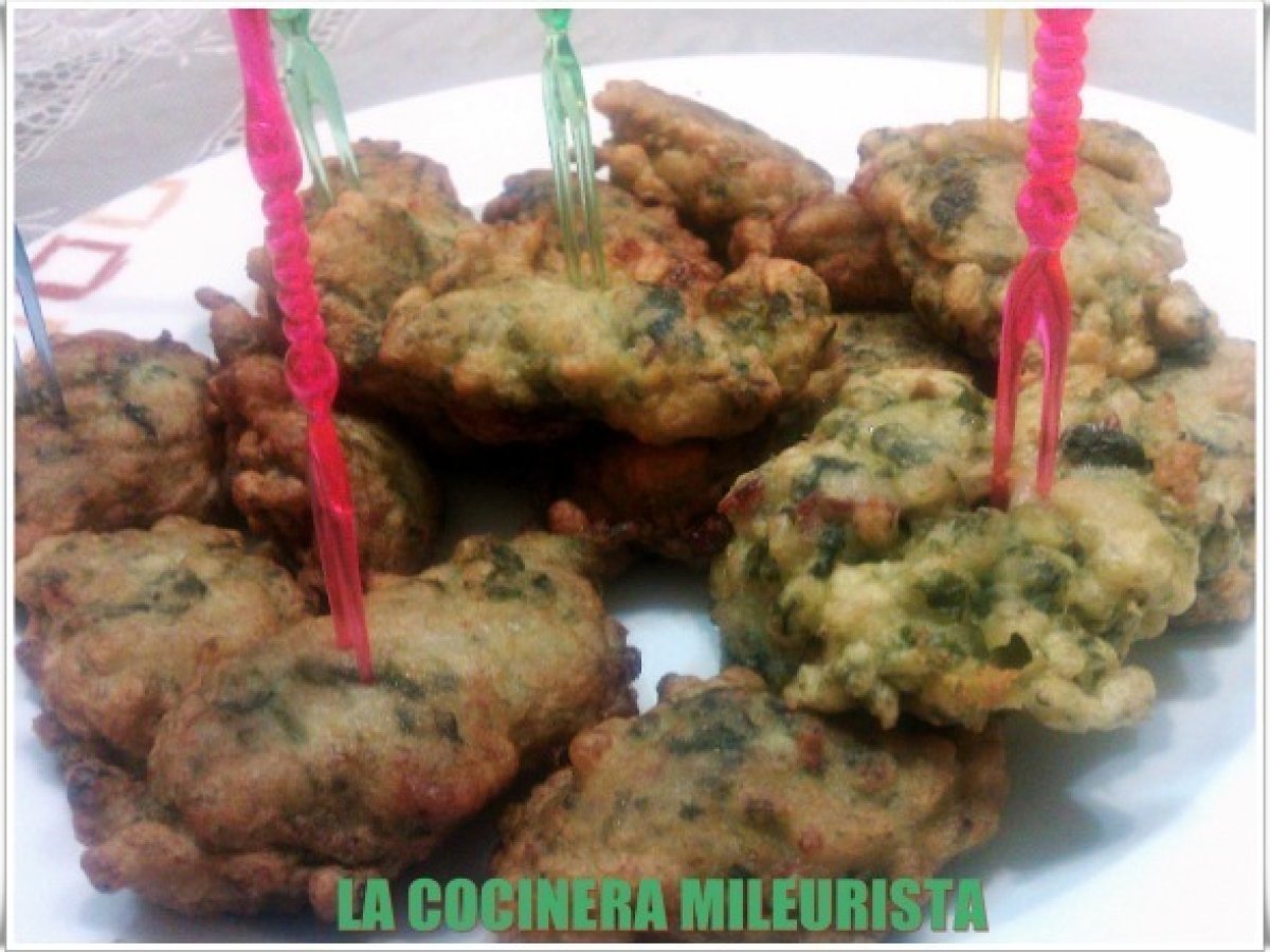 Buñuelos de arroz y espinacas con jamón y queso (receta de aprovechamiento)