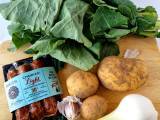 Cuando viajas siempre te llevas en la memoria el recuerdo de una comida que te ha impactado y al llegar a casa tratas de reproducir el plato. Y esto es lo que me ha pasado con esta receta que probé en Oporto. A pesar de ser agosto pasé bastante frio y este maravilloso caldo verde me sentó a gloria bendita más de una noche. Me ha salido bastante parecido al recuerdo que tengo de este plato nacional portugués. Ellos utilizan una variedad de col llamada couve galega pero puedes utilizar perfectamente berza, kale o grelos. Yo compré berza. En cuanto al chorizo ha sido todo un éxito. Encontré un chorizo ahumado asturiano y reducido en grasas. Espero seguir encontrándolo en Alcampo que fue donde lo compré.