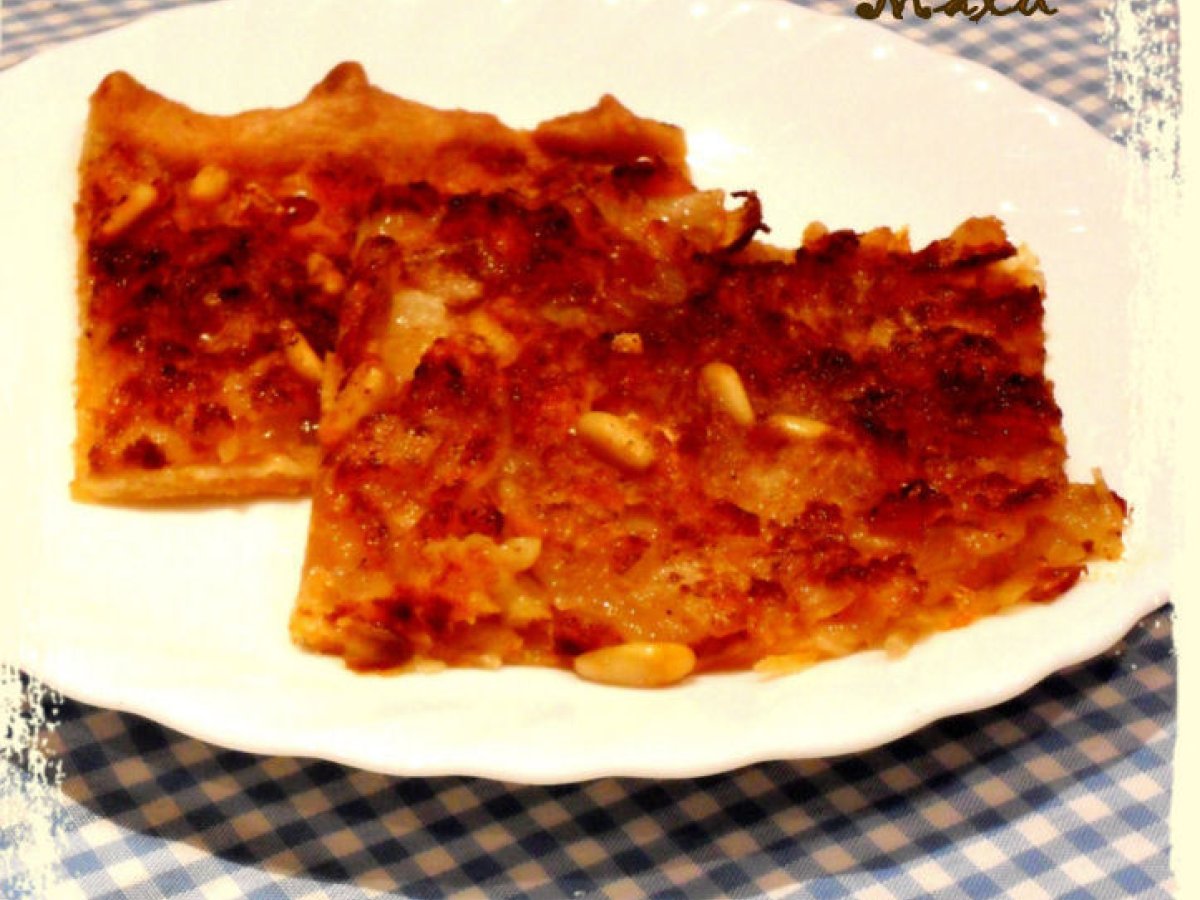 Coca de cebolla y bacalao