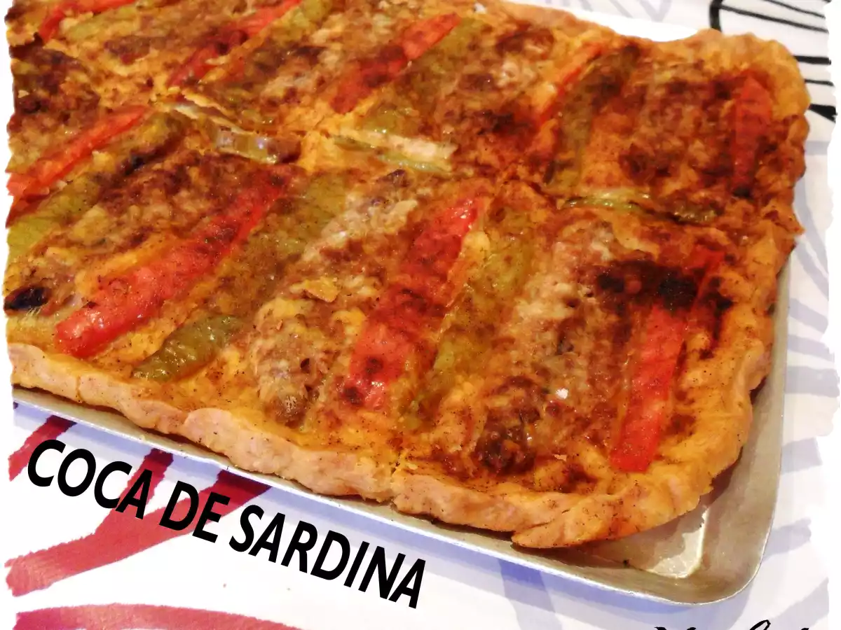 Coca de sardina de bota y pimientos con una masa crujiente. Un bocadito delicioso.