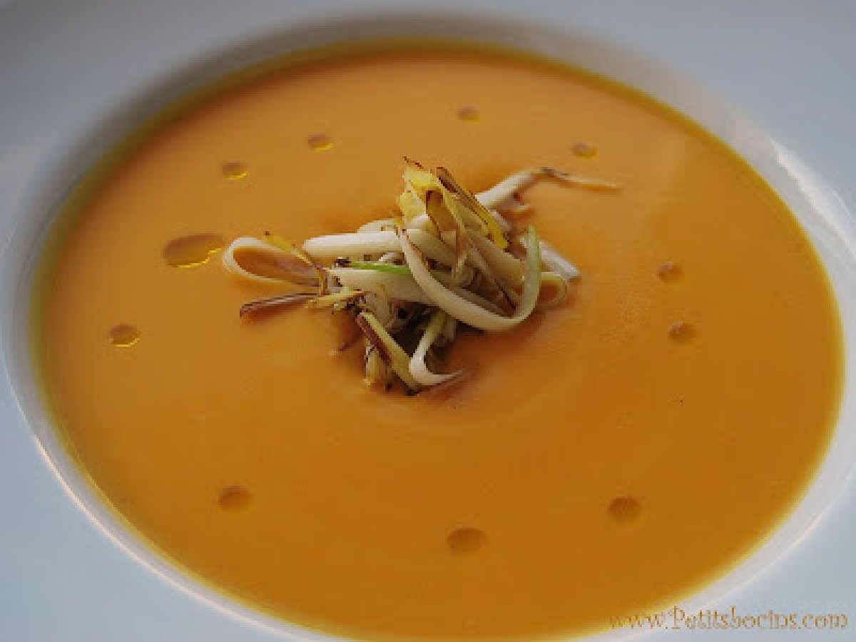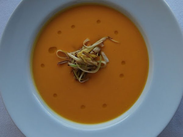 Crema de pastanaga i carbassa amb alls tendres vota ahora AnteriorSiguiente EntranteFácil35 min Enviar esta receta a un amigo Imprimir esta página Preguntar al autor Publicar la foto de esta receta Ingredientes 2 6 pastanagues 200 g de carbassa 1 porro gran 6 alls tendres Oli d'oliva 3 formatges tipus "quesito" Aigua mineral Mantega 1 patata mitjana Sal i pebre