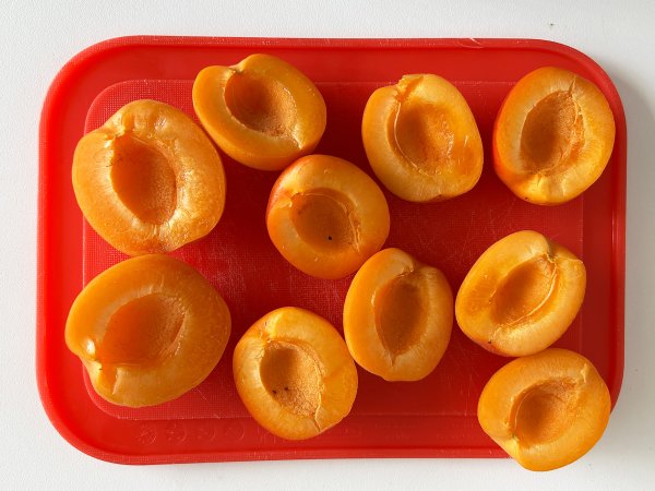 Lava y parte los albaricoques por la mitad, a lo largo.