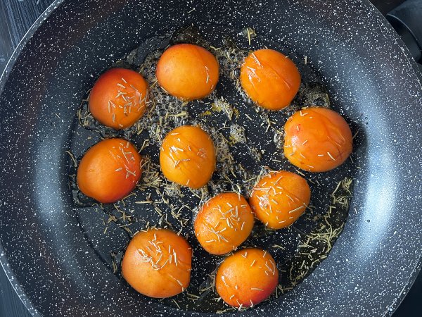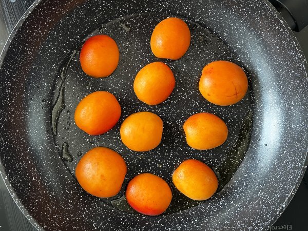 Saltea los albaricoques en una sartén bien caliente con un chorrito de aceite de oliva.