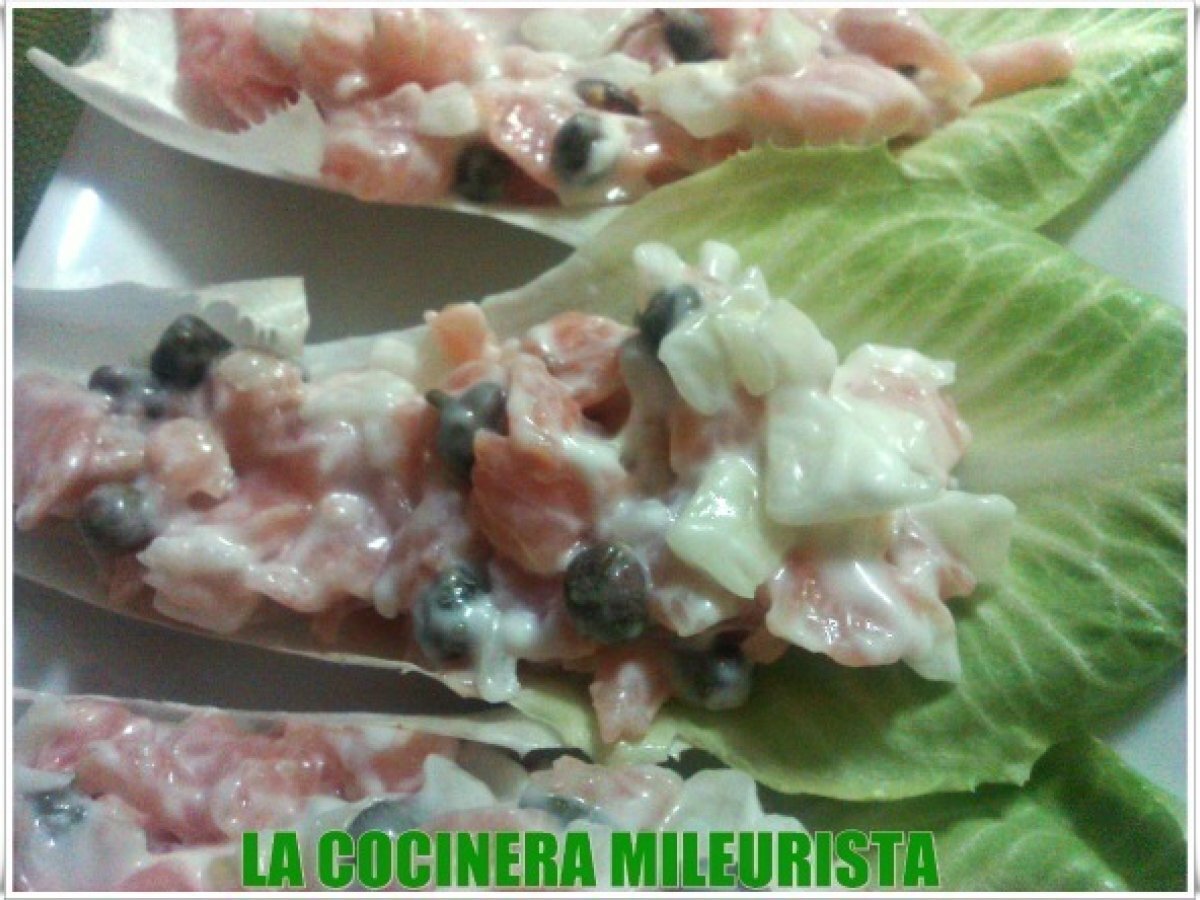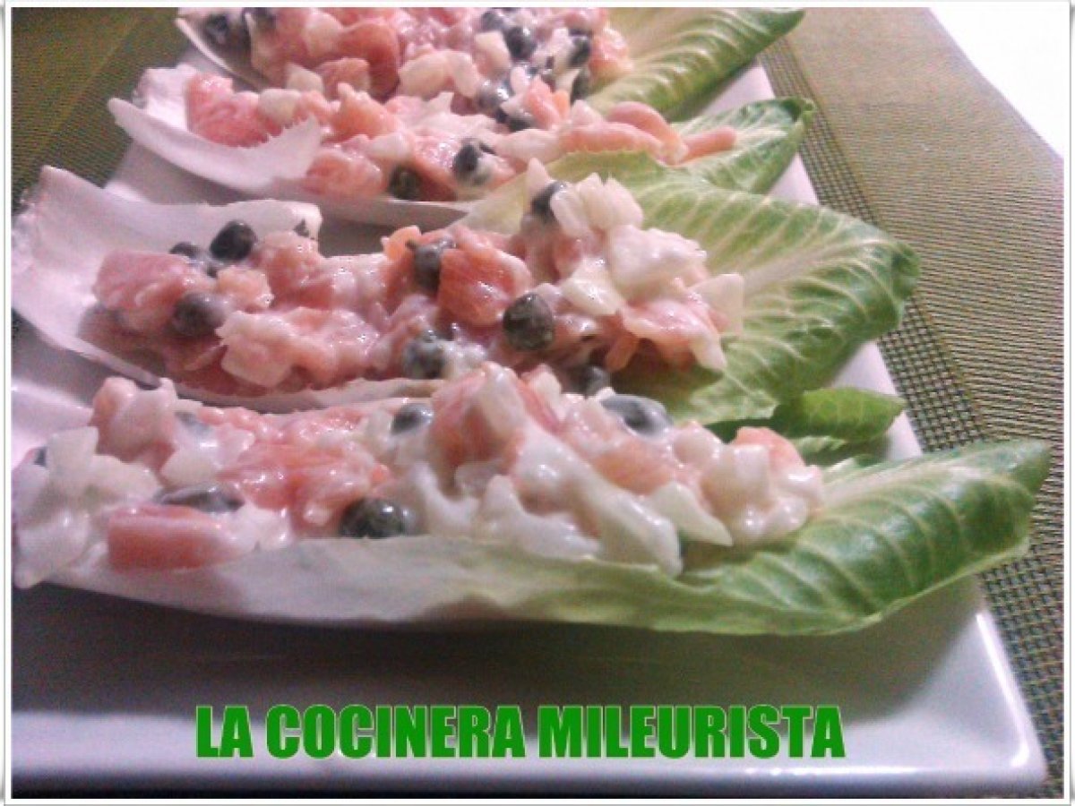 Si bien es verdad que tenemos que comer ensaladas todo el año, parece que si el tiempo acompaña estos días apetece más, ya que ha salido el sol y hace calor, me preparé esta ensalada con unos restos de salmón ahumado que tenía (Compré salmón ahumado y cuando veo que me sobra salmón si no lo voy a utilizar lo congelo para descongelarlo el día que lo vaya a utilizar) La ensalada que presento hoy se puede comer perfectamente en invierno como en verano se puede tomar como entrante o tapa y se prepa