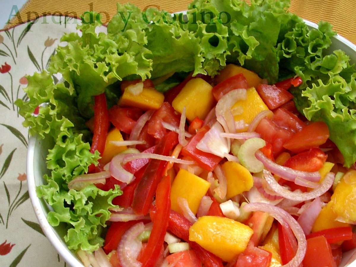 Ensalada de verano. Mango, tomate y balsámico de tamarindo! Fresquisima y rápida ensalada, ideal para BBQ´s