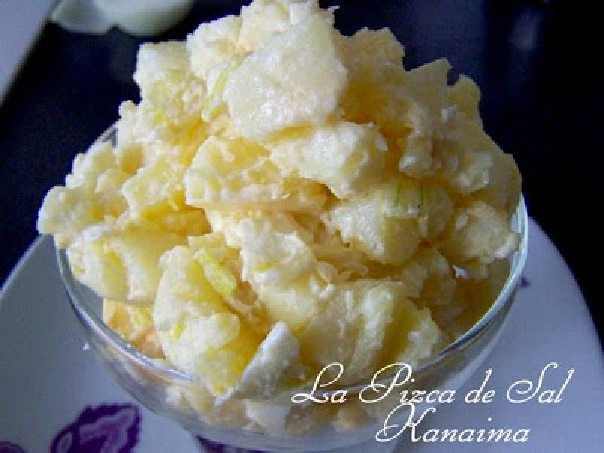 Ensalada de papas y huevos al ajo porro AnteriorSiguiente EntranteFácil55 min495 Kcal Enviar esta receta a un amigo Imprimir esta página Preguntar al autor Publicar la foto de esta receta Ingredientes 1 Papas medianas Ajo porro Cebolla Ajo Mayonesa Huevos Sal Pimienta blanca Aceite de oliva Costo estimado: 1.18Euros€ (1.18€/porción)